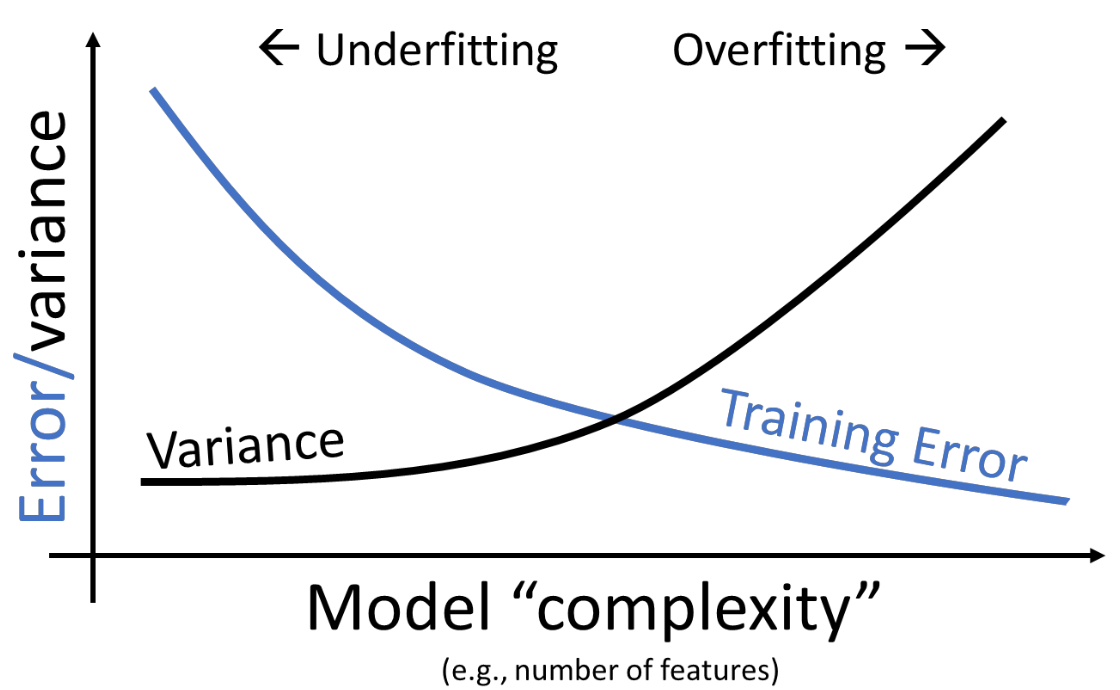 즉, 모델의 complexity가 높을 수록 overfitting하기 쉽고, 이는 모델의 variance가 커짐을 의미한다. 그렇다면, degree를 높이는 것이 나쁘다고 판단하여 낮춰버리면, training error를 줄일 수 없어서 그 중간의 sweet spot를 찾아야 한다.