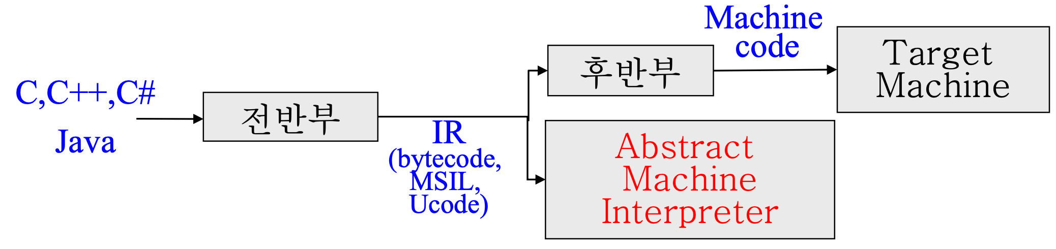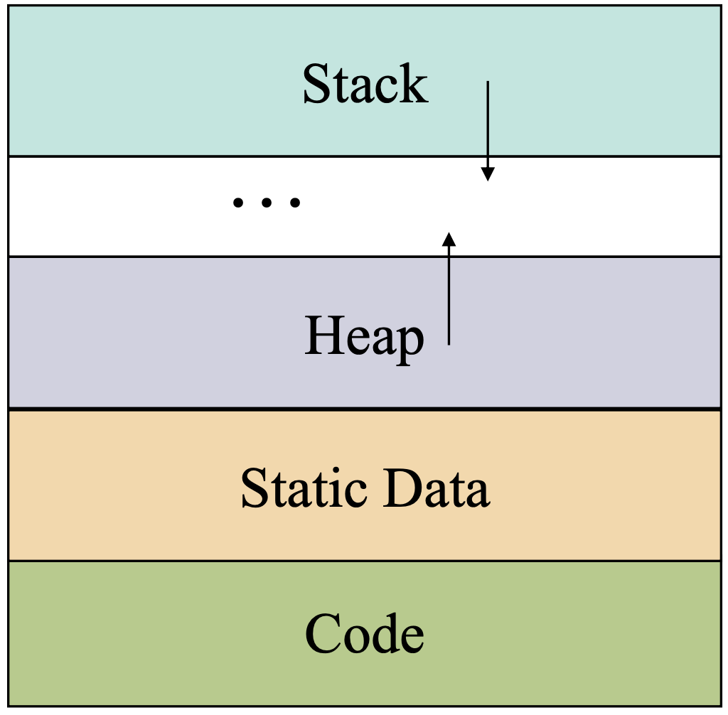 Memory Organization (Stack) Run-Time Stack run-time stack이란 call stack이라고도 불리며, 한 함수를 call 할 때마다 생성되는 프레임이나 activation record이 구성하는 스택을 말한다. Activation record 함수를 수행하기 위한 execution environment으로 스택의 한 칸을 의미한다. Activation record에는 로컬 변수와 인자, 리턴값, 기타 임시 저장소(3-addr code에서 사용)를 의미하고, 재귀문일 때에도 각 call마다 하나씩 스택에 Activation record를 넣는다. run-time stack의 연산은 아래와 같다. - f 가 호출되면 f의 frame을 stack에 push (호출) -..